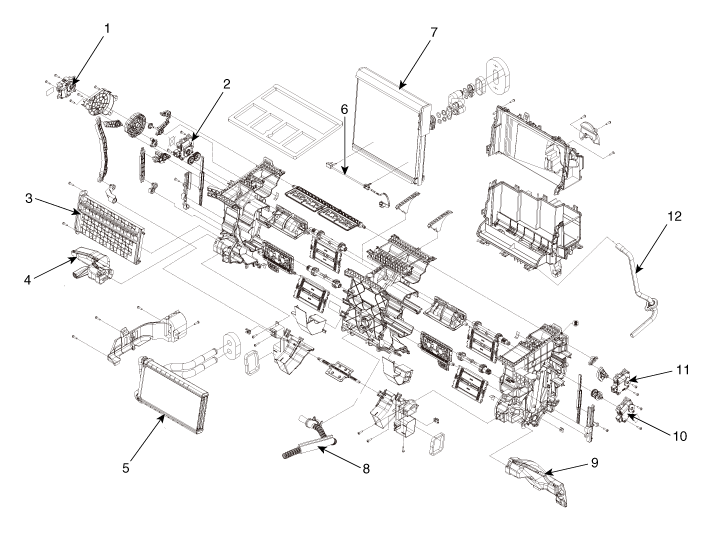 2. Привод контроля температуры [LH] 3. Макет нагревателя PTC 4. Душевой канал [LH] 5. Сборка сердечника нагревателя 6. Датчик температуры испарителя |