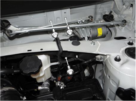 Ослабьте боковые болты крепления поперечины капота. [левый]