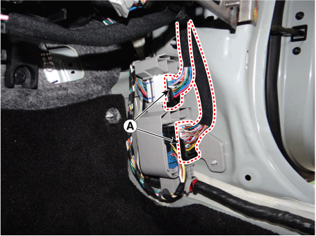 Отсоедините разъем (А) модуля управления подушками безопасности (SRSCM).