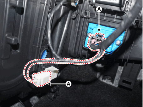 Отсоедините разъемы и проводку блока отопителя и вентилятора. [левый]