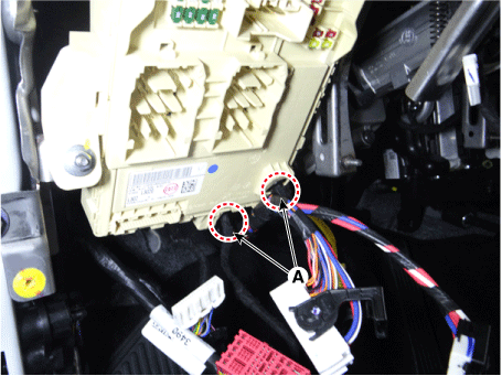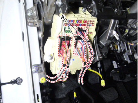 Отсоедините разъемы (А) от блока интенсивной терапии, а затем отсоедините проводку. монтажные клипсы.