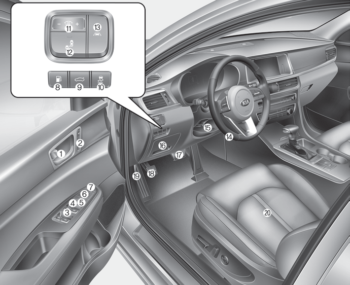 15. Рычаг управления наклоном и телескопическим рулевым управлением
