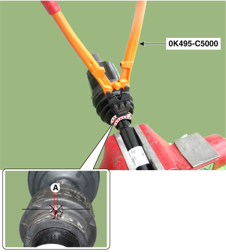 Затяните SST (0K495-C5200) на шлице приводного вала (A).