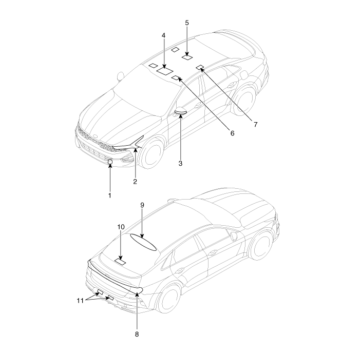 8. Задний комбинированный фонарь 9. Высоко установленный стоп-сигнал 10. Лампа багажника 11. Подсветка номерного знака |