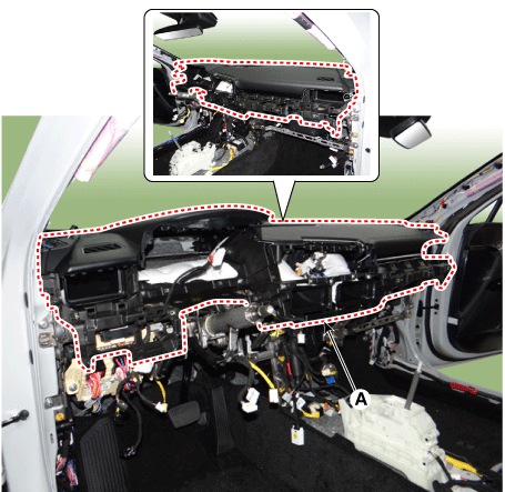 Отсоедините разъемы подушки безопасности пассажира (А).