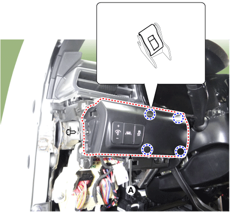 Ослабив крепежный винт, снимите нижнюю декоративную накладку краш-блока. [ЛС] (А).