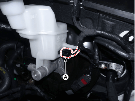 Отсоедините разъем датчика уровня тормозной жидкости (А).