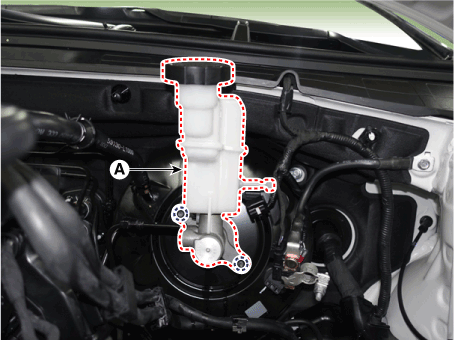 Снимите главный цилиндр (А) после ослабления гаек главного цилиндра.