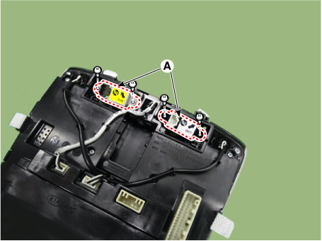 Снимите микрофон громкой связи (A) после ослабления винтов.