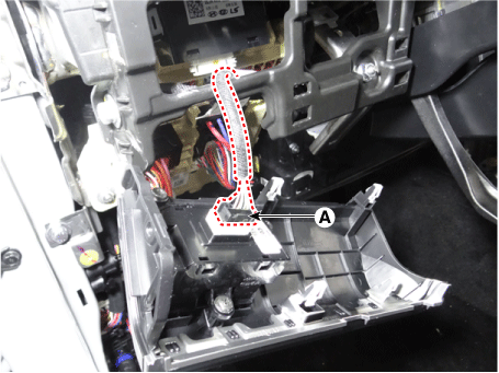 Отсоедините разъем (A) от нижней облицовки аварийной подушки [LH].
