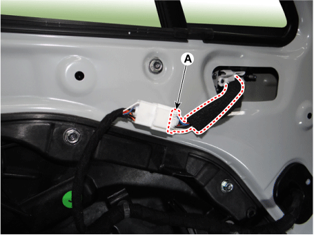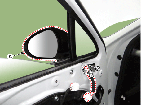 Отсоедините разъем наружного зеркала заднего вида (А).