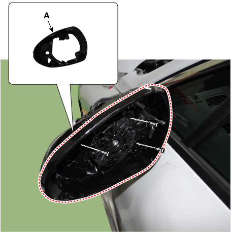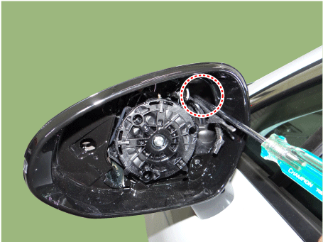 После вставки плоской отвертки, как показано на рисунке ниже, снимите зеркало (A), применив мгновенное усилие.