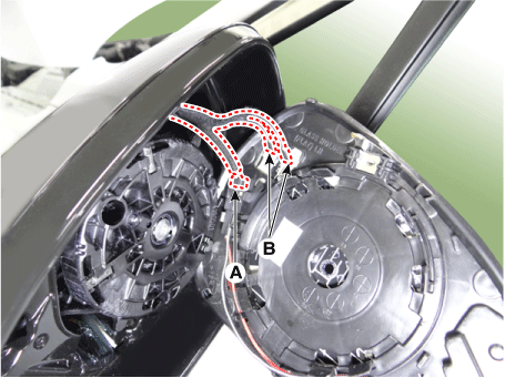 После вставки плоской отвертки, как показано на рисунке ниже, снимите зеркало (A), приложив небольшое усилие.