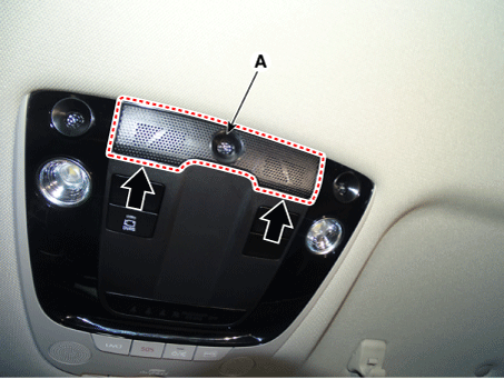 Снимите решетку микрофона лампы потолочной консоли (A) с помощью плоской отвертки. или ремувер.