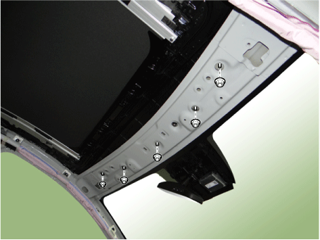 Снимите боковой молдинг крыши. (См. Боковые молдинги кузова — «Боковые молдинги крыши») |