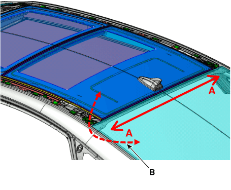Ослабьте гайки крепления панорамного люка (А). [Передний]