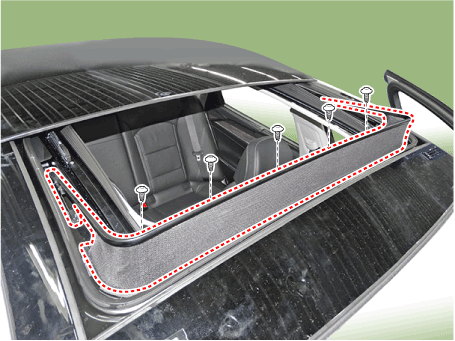 Ослабьте крепежные винты, расположенные сбоку панорамного люка. дефлектор.
