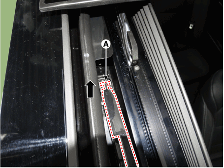 Снимите крепежный кронштейн дефлектора панорамного люка (А), нажав вверх, как стрела.