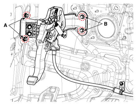 Ослабьте болты, а затем снимите узел педали стояночного тормоза.