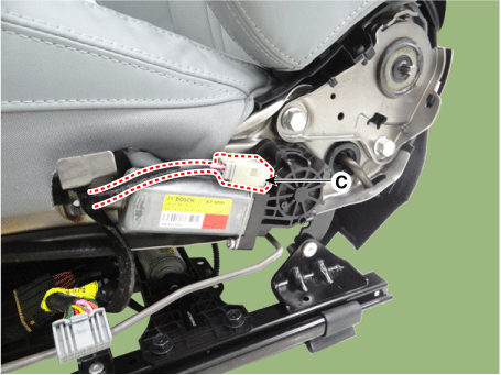 Отсоедините разъем двигателя после снятия сиденья. A : Двигатель передней высоты