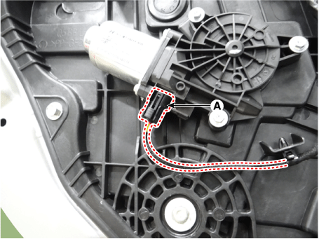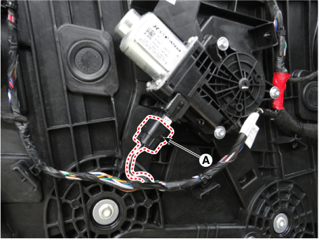Отсоедините разъем электродвигателя переднего стеклоподъемника (А).