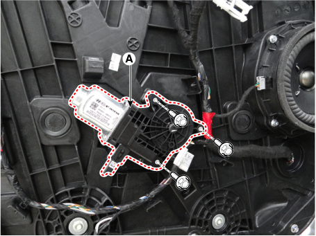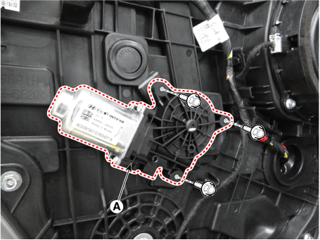 Снимите электродвигатель переднего стеклоподъемника (А) после ослабления крепления. болты.