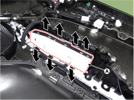 Снимите вспомогательный переключатель электрического стеклоподъемника (А), нажав на держатели в направление стрелки.