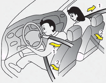Ваш автомобиль оснащен сиденьями водителя и переднего пассажира с преднатяжителями. ремни (преднатяжитель втягивающего устройства и EFD (аварийное застегивающее устройство)). Преднатяжитель ремни безопасности могут быть активированы, когда лобовое столкновение достаточно сильное, вместе с подушками безопасности.