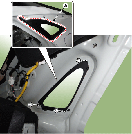С помощью отвертки или съемника снимите декоративную накладку задней стойки (A).