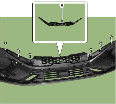 Ослабьте крепежные винты и снимите верхнюю крышку переднего бампера (А).