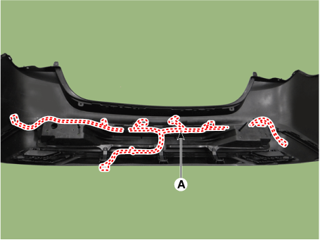 Разъедините зажимы крепления жгута проводов заднего бампера (А).
