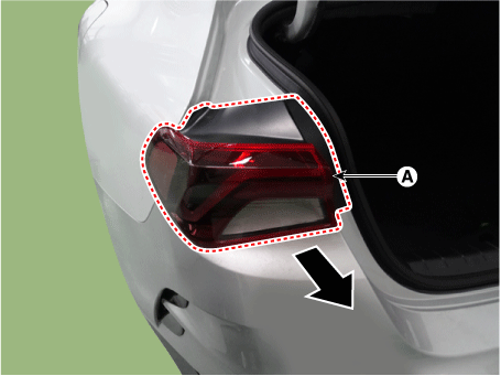 Отсоедините разъем заднего комбинированного фонаря (А) после ослабления орехи.