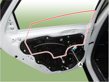 Снимите ремень задней двери снаружи уплотнителя (А).