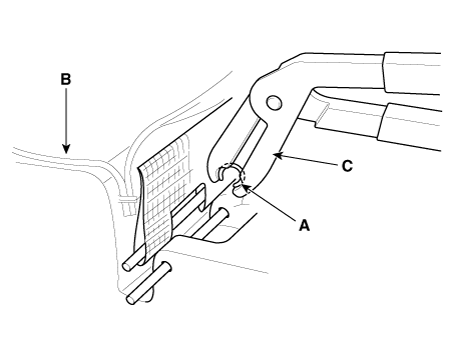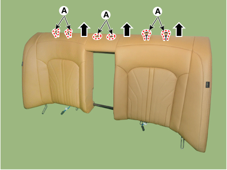 Снимите обивку спинки заднего сиденья внутри кольцевых зажимов (А).