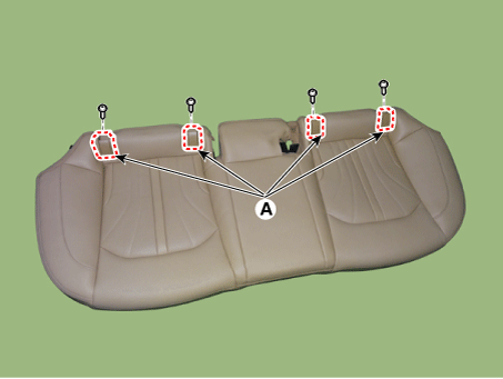 Снимите зажимы с зажимными кольцами чехла подушки заднего сиденья и снимите заднюю чехол подушки сиденья (А).