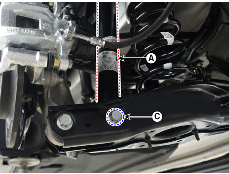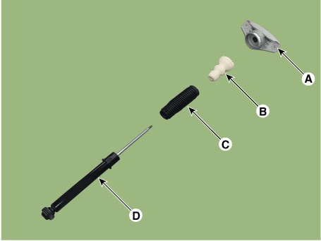 Отделите узел кронштейна (A), резиновый бампер (B), пылезащитный чехол (C), амортизатор (D).