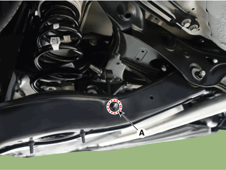 Ослабьте болт и гайку (А), а затем отсоедините заднюю стойку стабилизатора. от заднего нижнего рычага.