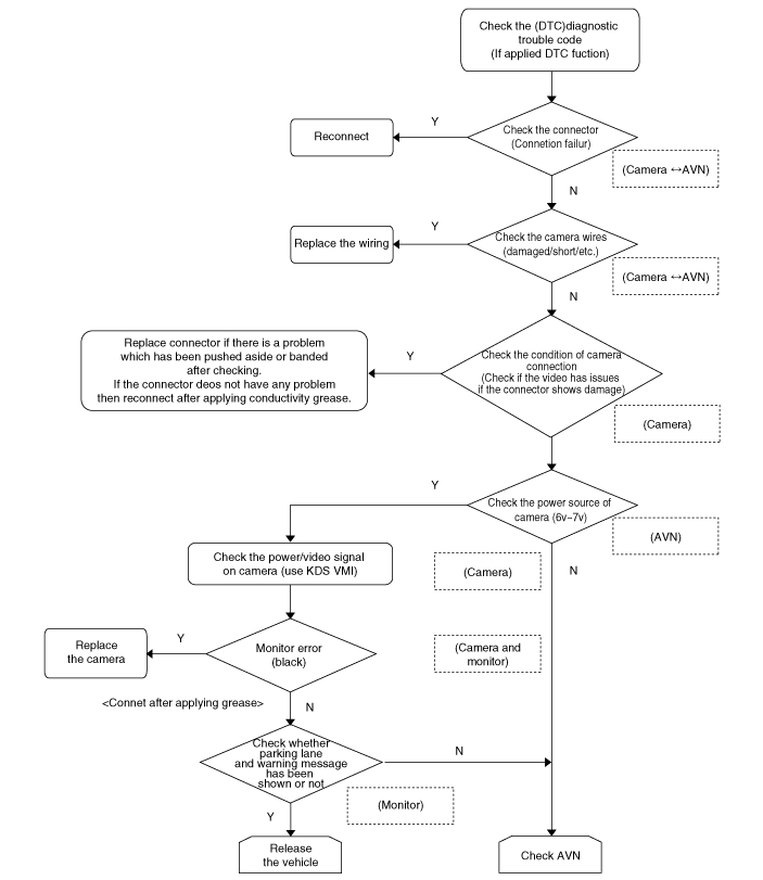 Р-1. Проверьте в следующем порядок появления черного экрана (камера - спецификация прямого подключения AVN)