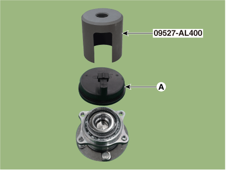 Установите крышку датчика (A) с помощью специального сервисного инструмента (09527-AL400).