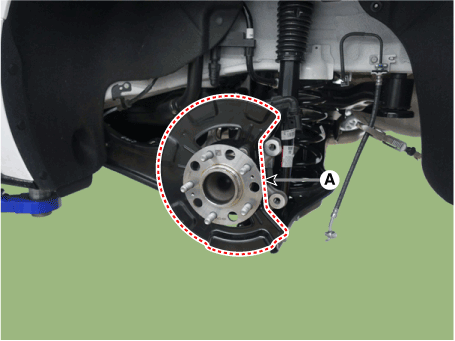 Снимите ступицу в сборе и пылезащитный кожух (A) после ослабления крепления. болты.