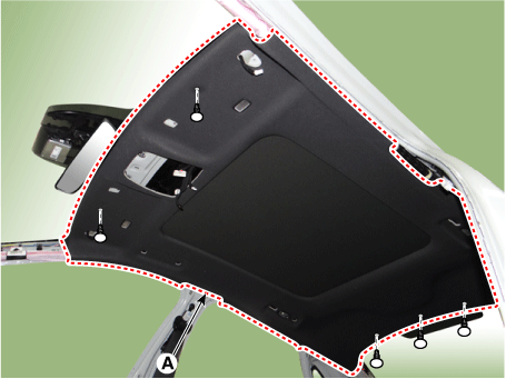 Снимите обивку крыши в сборе (А) с панели кузова и перенесите из автомобиля через заднюю дверь.