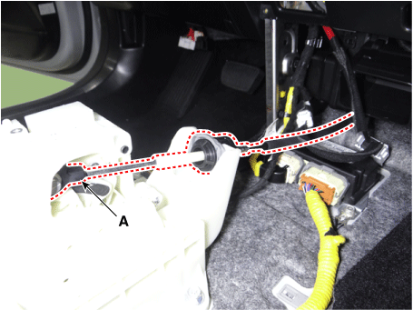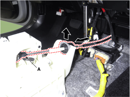 Снимите трос переключения передач (А) с рычага переключения передач.