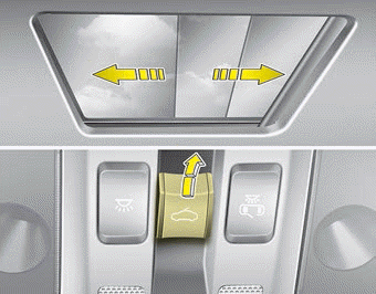 Чтобы остановить движение стекла люка в любой момент, нажмите рычаг управления люком моментально.