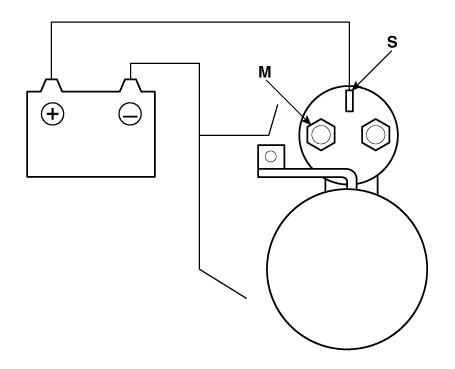 Отсоедините аккумулятор от клеммы М. Если шестерня не втягивается, удерживающая катушка работает правильно.