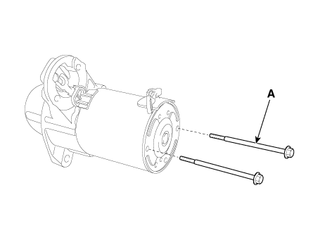 Отсоедините М-клемму (А) на блоке магнитного переключателя.
