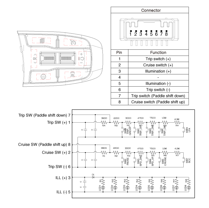Проверьте сопротивление между клеммами в каждом положении переключателя. [Аудио + Bluetooth + Голос]
