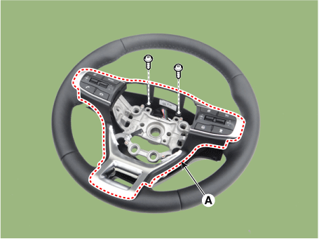 Снимите узел пульта дистанционного управления с рулевого колеса (А), ослабив монтажные винты.