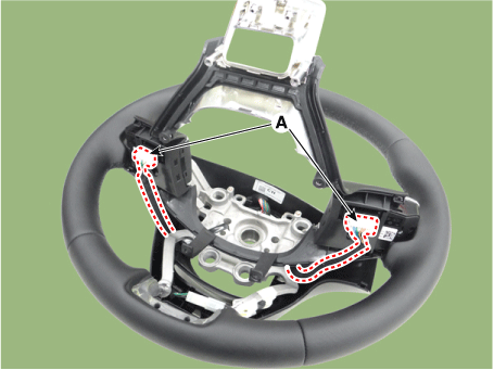 Отсоедините разъемы пульта дистанционного управления на рулевом колесе (А).