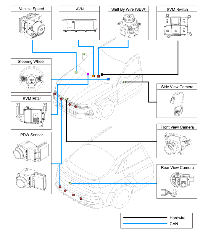 ЭБУ SVM получает данные о состоянии автомобиля по шине C-CAN и определяет