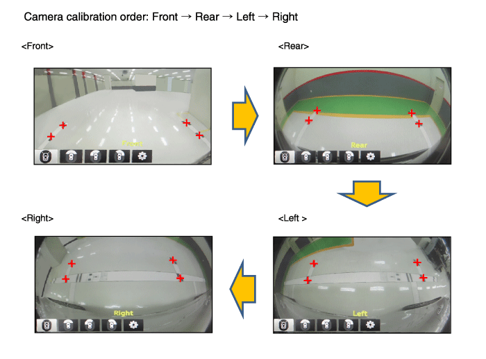 Убедитесь, что переднее, заднее, левое и правое изображения объемного обзора